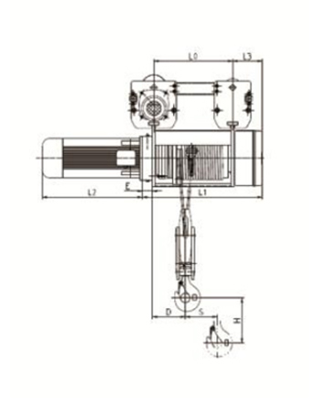 型號 起重量(T) 工作級別 滑輪倍率 起升速度(m/min) 起升電機功率(kw) L2(mm) φmm Amm A0mm Bmm Hmin   mm L3    mm S      mm