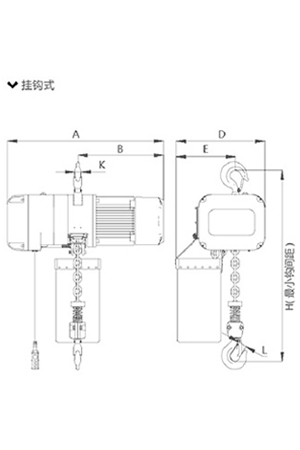 掛鉤式環鏈電動葫蘆0.25T-5T尺寸參數