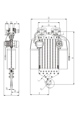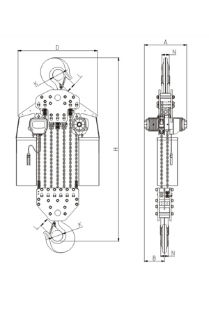 磅磁剎車:新設計的磁力產生器,其特性為產磁。可在電源切斷的同時間剎車,保證吊重時剎車確保安全。極限開關:吊上吊下都有極限開關裝置,使自動停止,防止鏈條超出,確保安全。